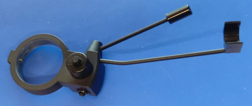 (Anmerkung. Es gab offensichtlich schlecht gefertigte Gegengewichtsträger (Ausschussware), bei denen die Bohrung nicht gerade und ein „Ei“ ist. Dort läßt sich das Gewicht nur zur Hälfte einstecken und klemmt dann. Man muß dort die Bohrung im Gegengewichtsträger etwas nacharbeiten oder einfach nur das Einsteckrohr des Zusatzgewichts mittels Säge etwas kürzen. Das Gewicht läßt sich auch bei den Armen mit Innengewinde einstecken)